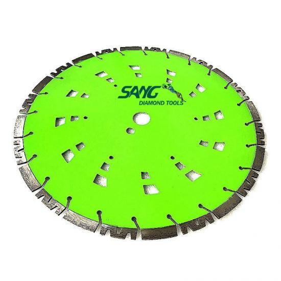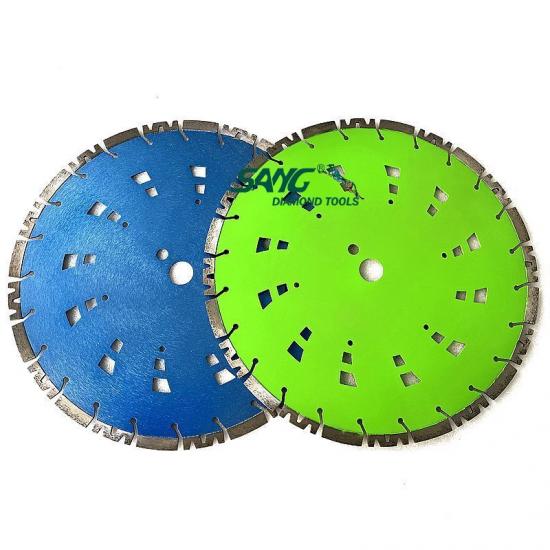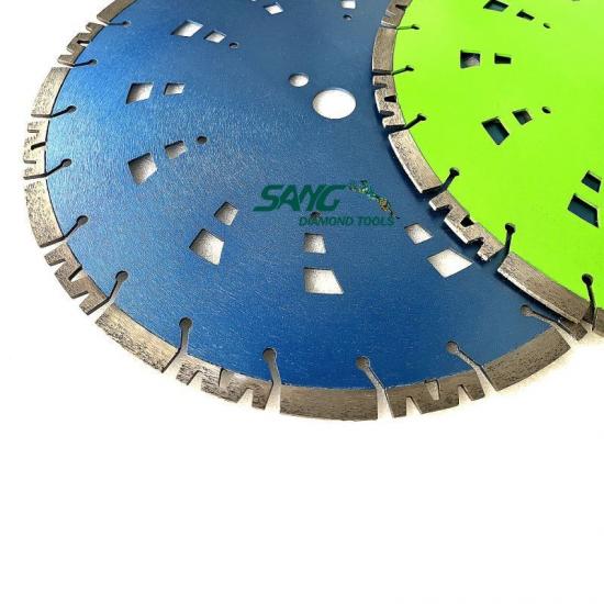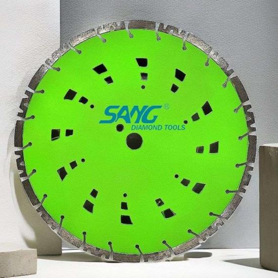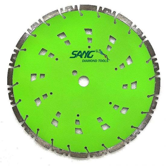 Segmente de diamant: Aceste lame au segmente de diamant pe muchia de tăiere. Diamantele sunt cel mai dur material cunoscut și sunt capabili să taie materiale dure precum betonul. Segmentele sunt sudate cu laser pe lamă, oferind o rezistență și durabilitate excelente.
