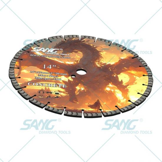Îmbunătățiți-vă uneltele de tăiere cu discul de tăiat diamantat cu săgeată sudată cu laser de 350 mm Turbo Arix Segment Beton Cutter. Experimentați o eficiență și durabilitate de tăiere de neegalat, făcându-vă sarcinile de tăiere a betonului mai ușoare și mai eficiente.