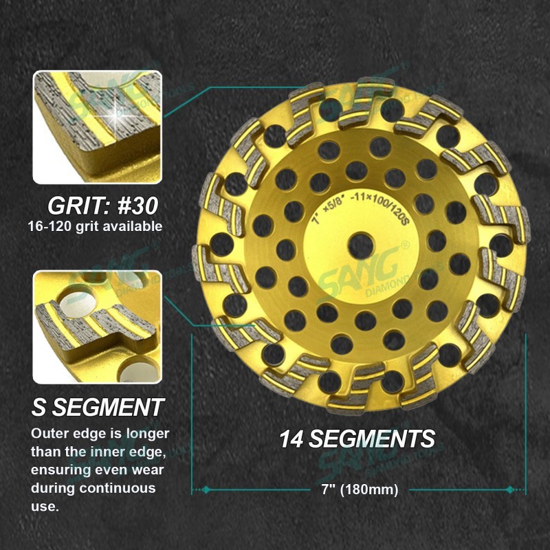 /Disc diamantat cu cupă Turbo S-Seg de 7" 180 mm – filet 5/8"-11 pentru șlefuirea betonului