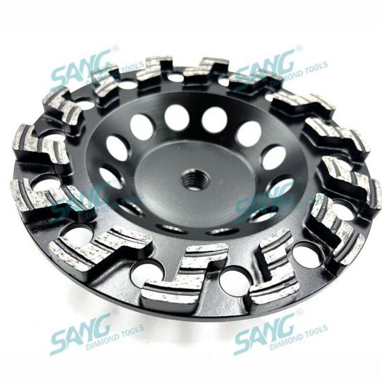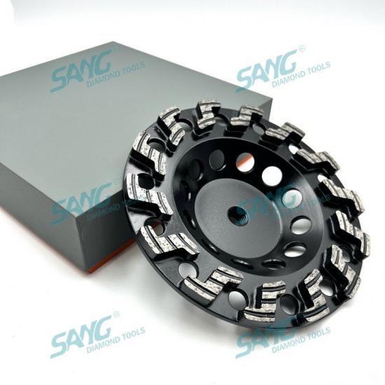 a cântat roata cupei de diamant utilizat pentru fermecarea, teșirea și șlefuirea marginilor de piatră și beton & amp; suprafaţă. granulație: 36 #, 46 #, 60 #, 80 #, 100 #, 120 #, 200 # există conexiune universală de la 150mm (22.23 / m14)