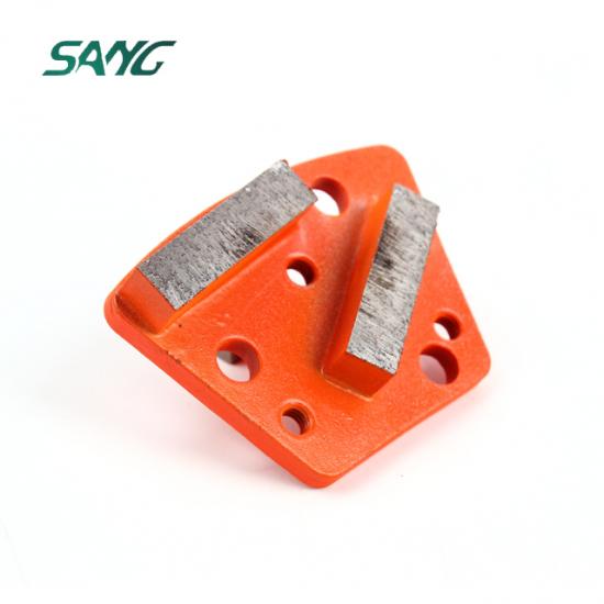 Segmentele de șlefuit cu diamante cu bară dublă trapezoidală sunt unelte specializate utilizate în șlefuirea și lustruirea podelelor din beton. Aceste segmente sunt proiectate pentru a fi atașate la polizoarele de podea, cum ar fi cele de la Diamatic, Blastrac, Klindex, CPS, SASE, Bartellglobal, Levetec și altele.